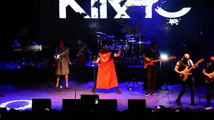 Ünlü şarkıcı Kıraç, Bursa Açıkhava Tiyatrosu'nda Bursalı sevenleri ile buluştu. Ay-yıldızlı hırkası ile sahneye çıkan Kıraç; 'Maalesef son yıllarda ayrıştığımızı görüyorum ama nerede birleşiyoruz? Bayrağımızı çok seviyoruz. En azından ortak bir bayrağımız var.' dedi.