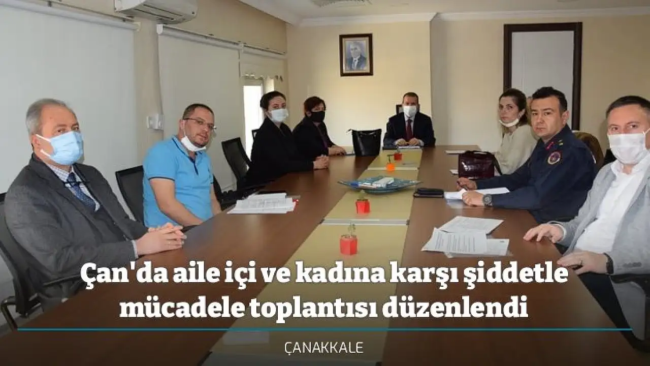 Çan Kaymakamlığınca hazırlanan 2022 yılı kadına yönelik şiddetle mücadele eylem planı çerçevesinde ve Çanakkale Valiliğinin 24390 sayılı yazısı ekinde alınan İçişleri Bakanlığı İller İdaresi Genel Müdürlüğünün 24444 sayılı yazısı çerçevesinde ilçenin ilgili kurumlarının yöneticileriyle aile içi ve kadına karşı şiddetle mücadele toplantısı düzenlendi. Çan Kaymakamı Mustafa Gürdal başkanlığında, Kaymakamlık toplantı salonunda düzenlenen toplantıya, Çan Belediye Başkan Vekili Ayşe Nursevim Türer, İlçe Emniyet Müdürü Cengiz Akpınar, İlçe Jandarma Komutanı Üsteğmen Levent Çalış, Milli Eğitim Müdür Vekili İlhan Özkan, İlçe Sağlık Müdürü Dr. Nilay Madan, İlçe Müftüsü Mustafa Korkmaz, Sosyal Yardımlaşma ve Dayanışma Vakfı Müdürü Zübeyde Dinç, Uygulamalı Bilimler Yüksek Okulu Öğr. Gör. Seçil Öztürk, Çan Meslek Yüksek Okulu Müdür Yrd. Öğr. Gör. Uğur Dündar, Yazı İşleri Müdür V. Fatih Karaca katıldı.