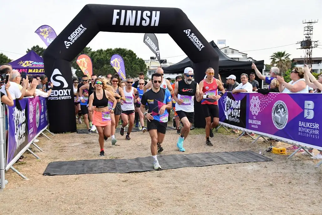 Balıkesir Avşa Yarı Maratonu'nda 300'den fazla yerli ve yabancı sporcu 'Temiz Denize Doğru Koşuyoruz' sloganıyla Marmara Denizi'ne koşarak sıfır atık konusuna dikkat çekti.