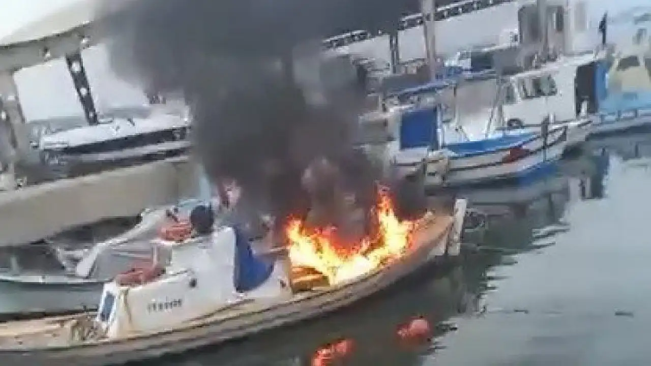 Kendisine ait balıkçı teknesini benzin döküp yaktı