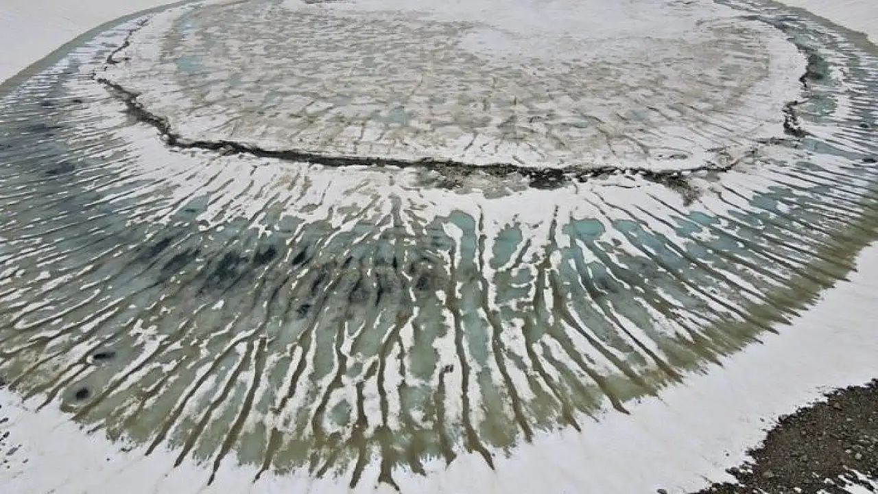 Bursa'da baharın gelmesiyle birlikte erimeye başlayan Uludağ'ın zirvesindeki buzul göllerinin görüntüsü görsel şölene dönüşüyor.