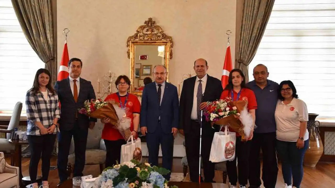 Dünya Şampiyonu sporcuların ailelerinin de yaşadıkları mutluluğu ifade ettiği ziyarette Vali Karadeniz, Dünya Şampiyonu Milli Sporcular Sümeyye Kaya ve Hediye Nur Çakıcı’ya çeşitli hediyeler verdi.
